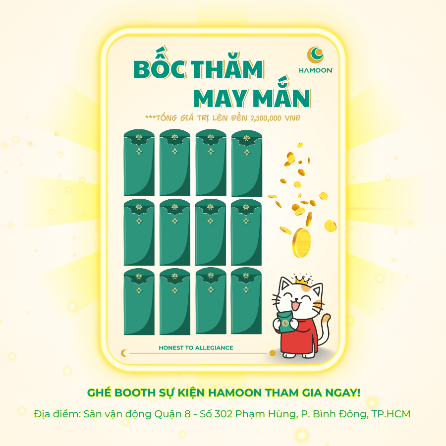 Hãy ghé thăm gian hàng của HAMOON tại Sân vận động Quận 8 để nhận nhiều phần quà siêu hấp dẫn và tham gia trải nghiệm nhiều hoạt động sáng tạo, ý nghĩa như: