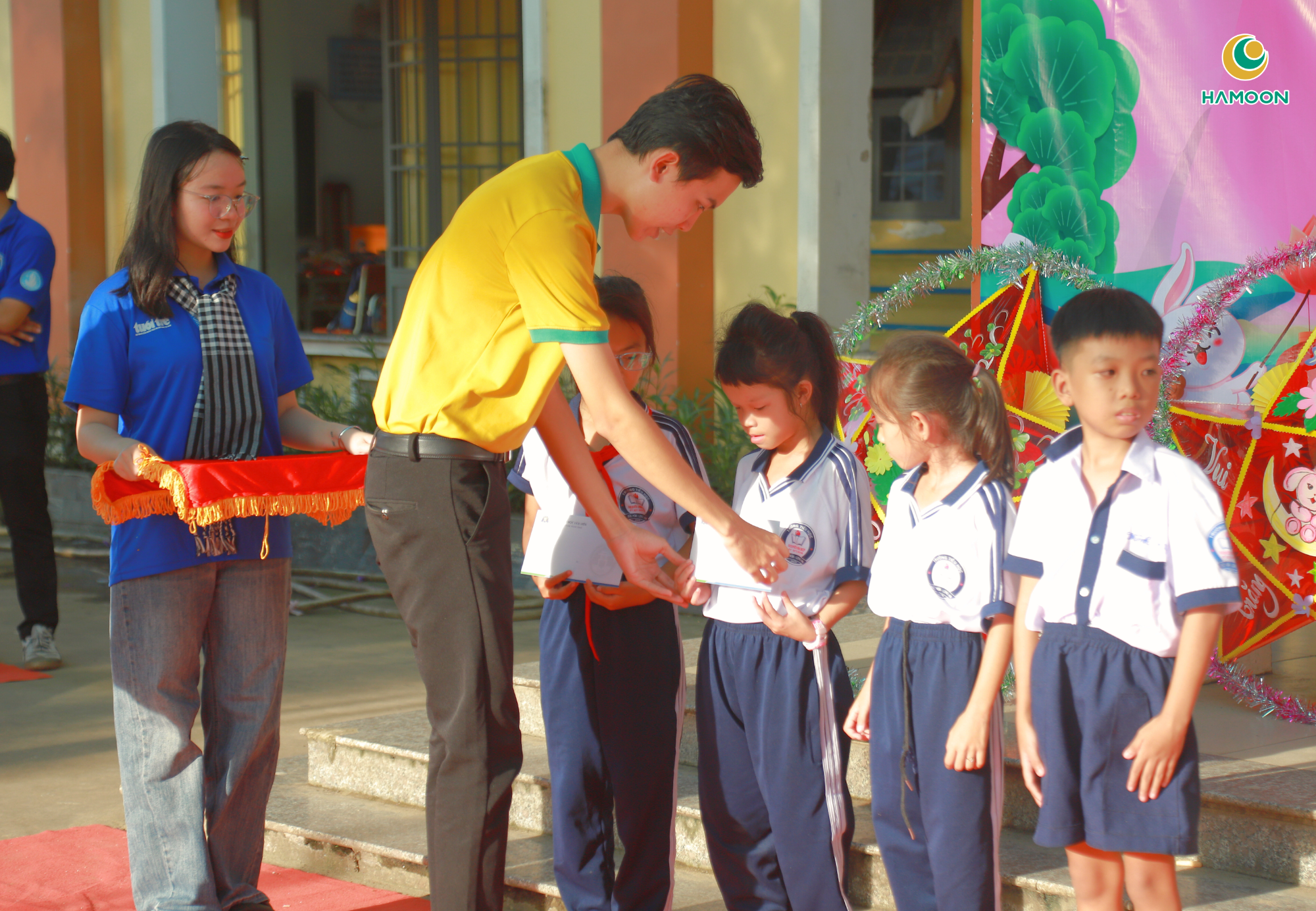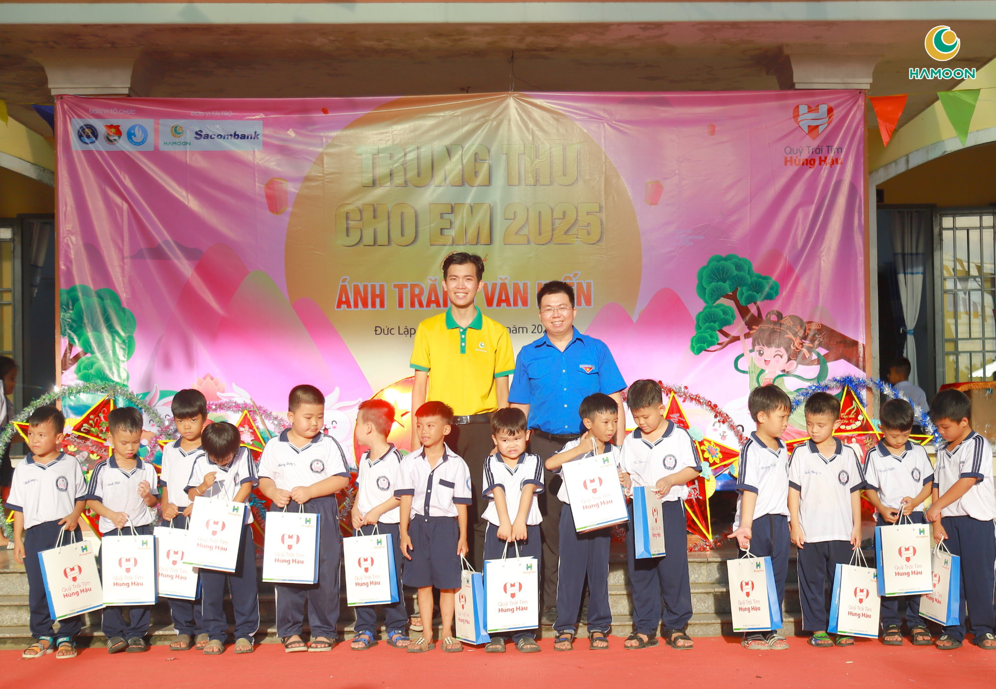 Trong khuôn khổ chương trình, HAMOON vinh dự khi được đồng hành cùng Đoàn Thanh Niên – Hội Sinh Viên Trường Đại Học Văn Hiến, Quỹ Trái Tim Hùng Hậu và ECOBOOK, trao hơn 100 suất học bổng cùng nhiều phần quà thiết thực cho các em thiếu nhi tại địa phương. Đây không chỉ là sự hỗ trợ vật chất mà còn là nguồn động viên tinh thần mạnh mẽ đối với các em có hoàn cảnh khó khăn, khuyến khích các em tiếp tục vượt khó và phấn đấu trong học tập và cuộc sống. HAMOON tin rằng, sự chung tay này đã gửi gắm một thông điệp ý nghĩa: thế hệ trẻ luôn được quan tâm và đồng hành trên mọi chặng đường phát triển.